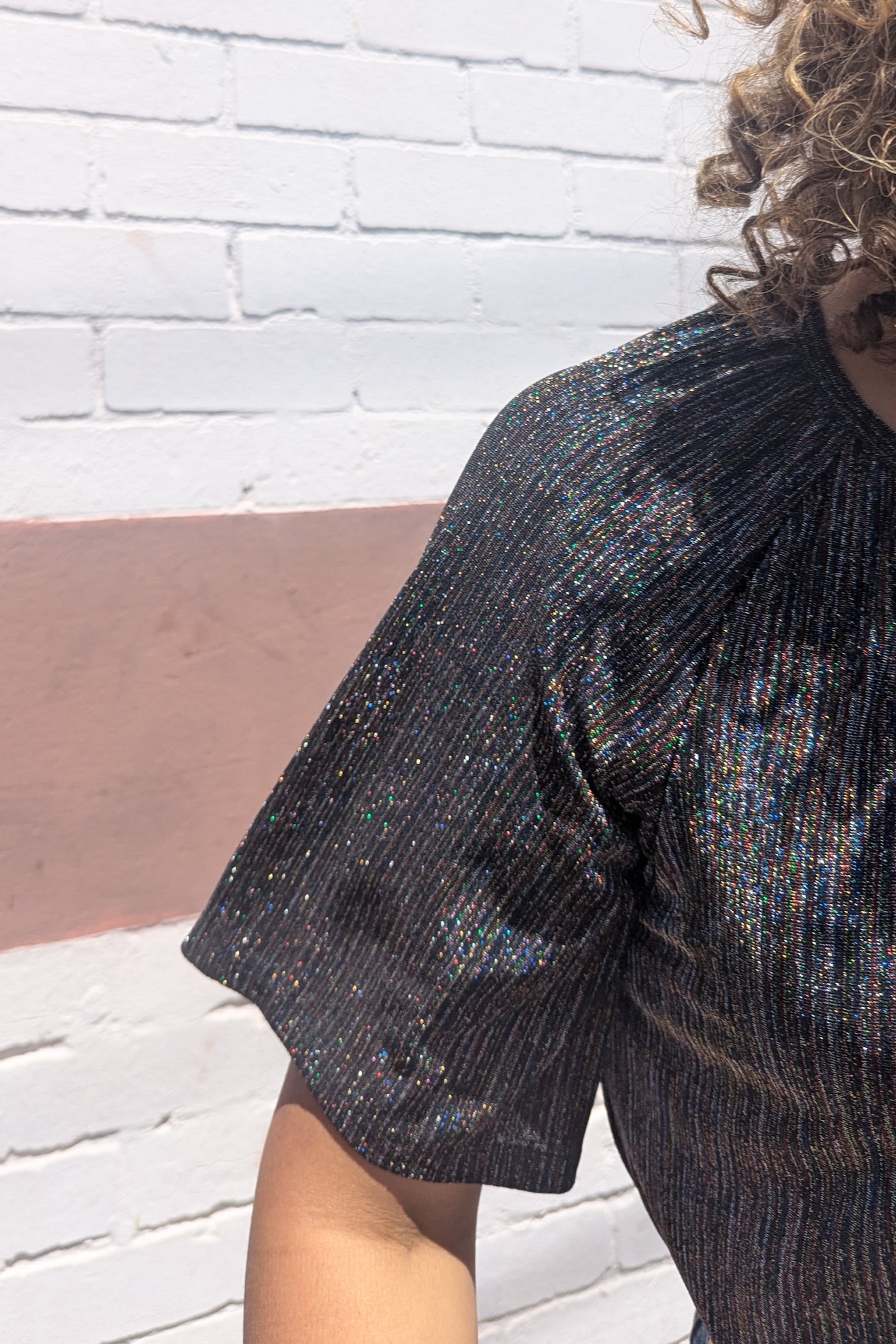 DISCO STRIPE Fluted Sleeve Lurex Top