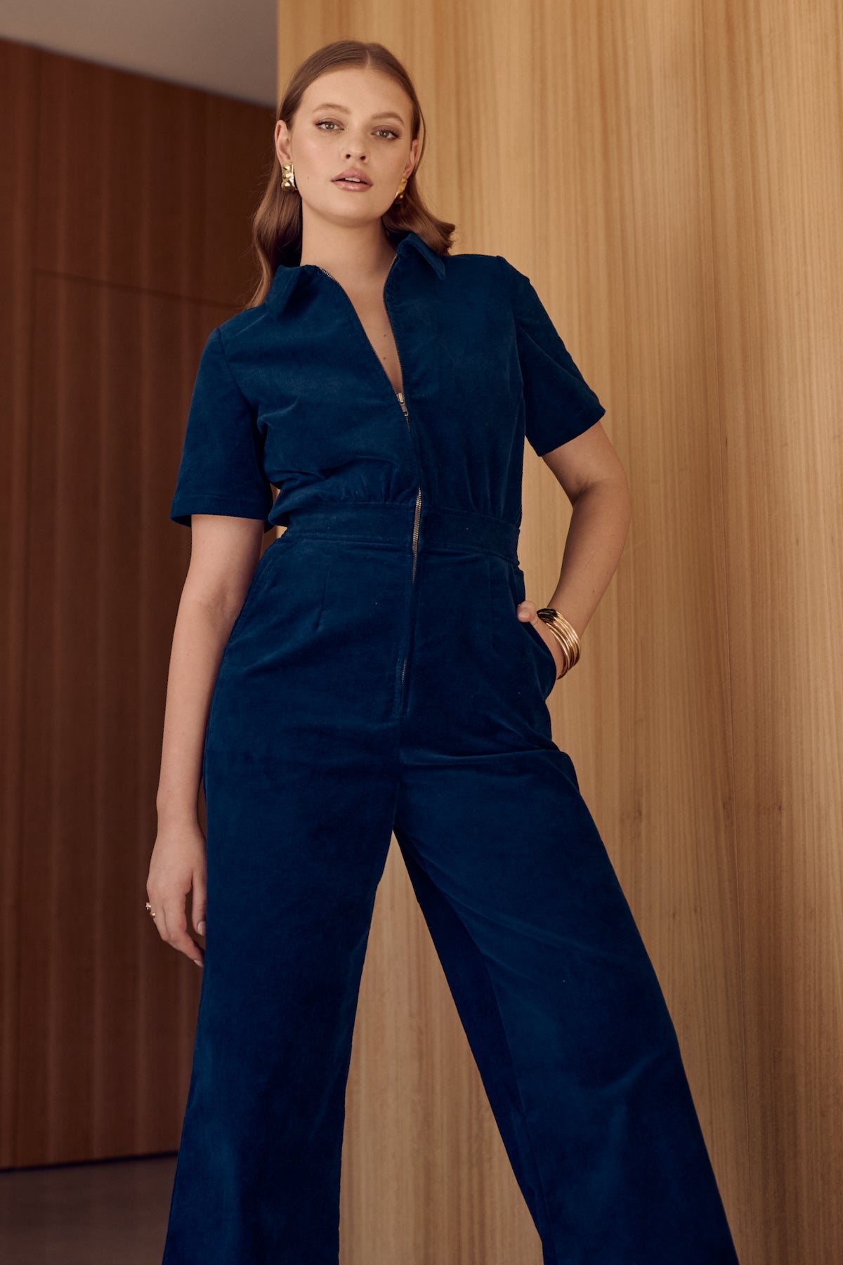 Blue Denim Short Zip Up Jumpsuit Playsuit Boilersuit