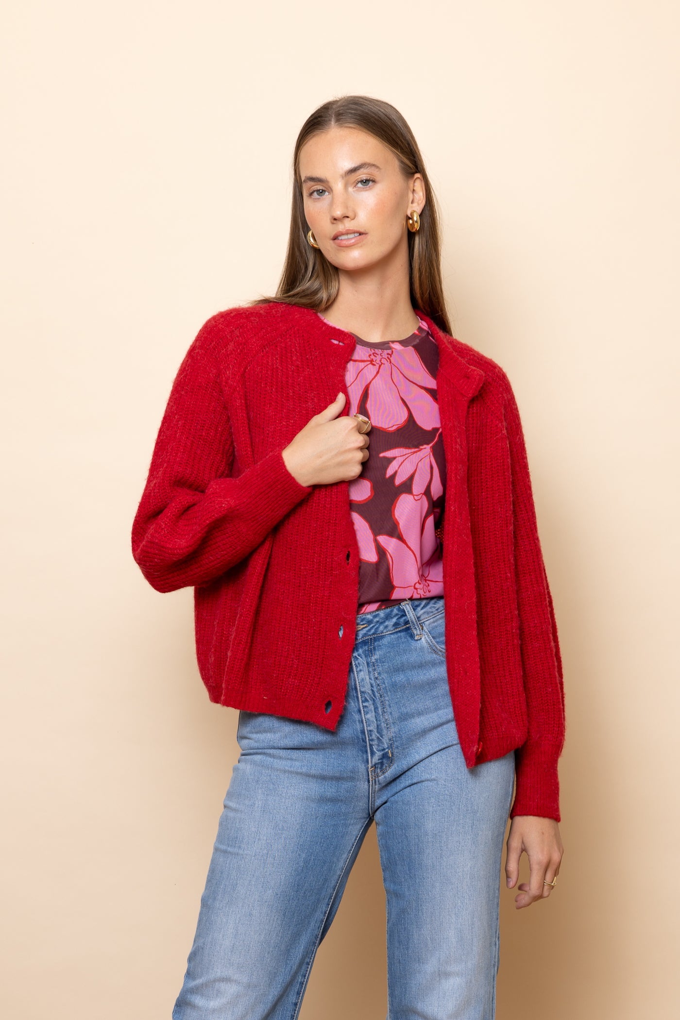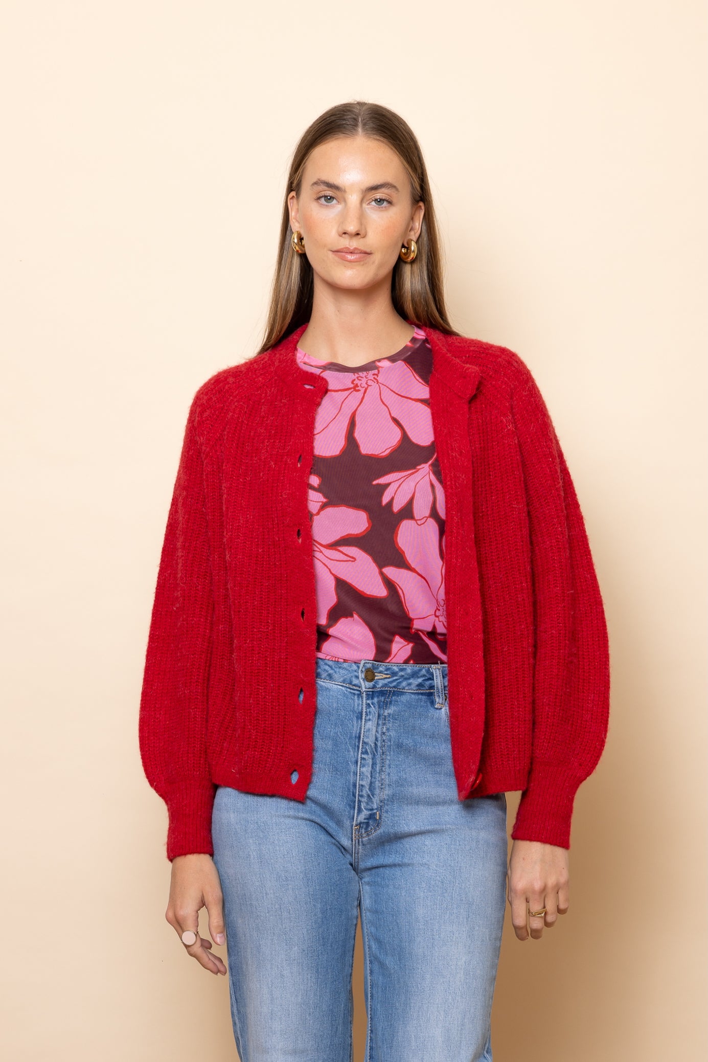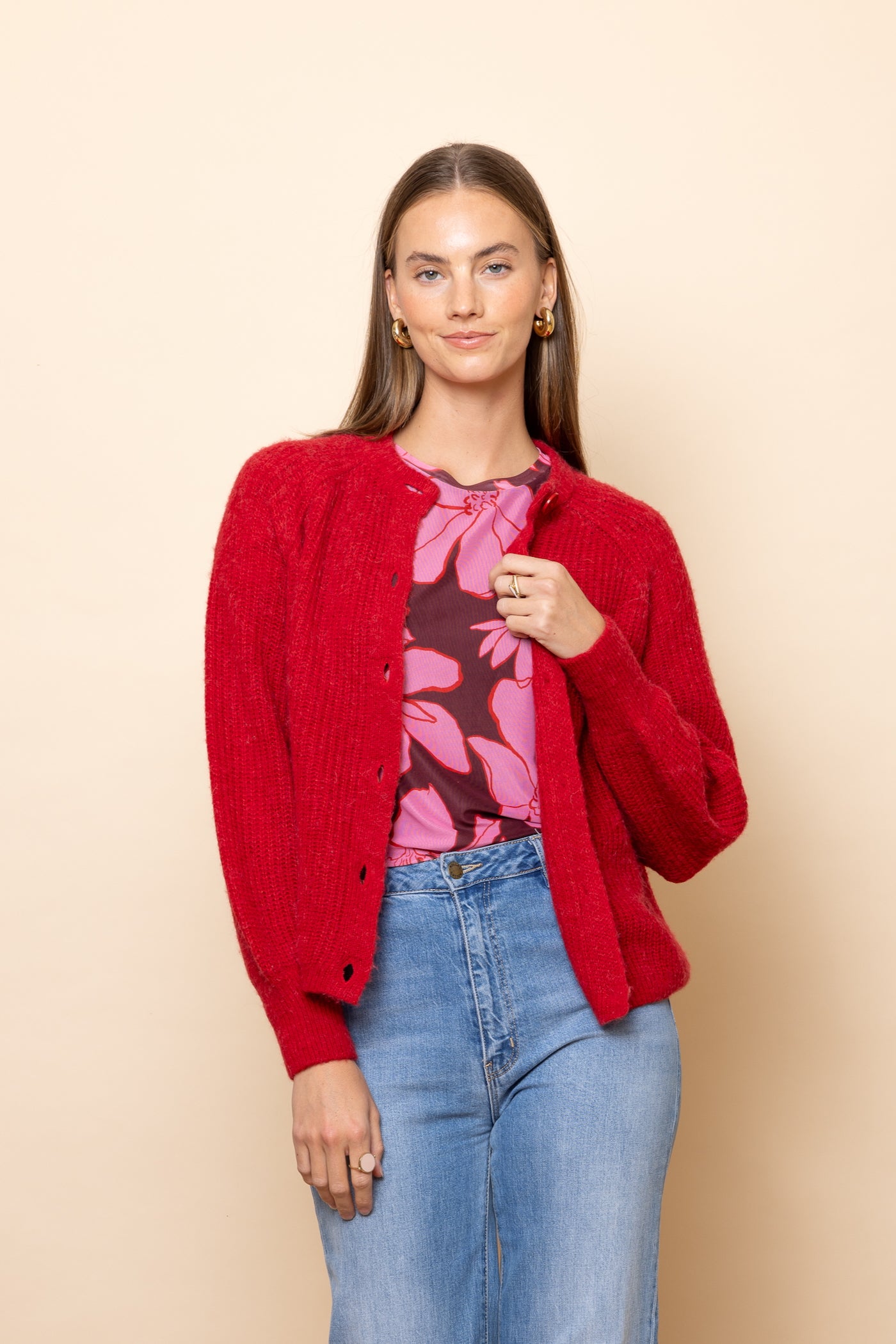 Regular price $149.00Congratulations - you have just discovered the perfect cardigan! In a gorgeous shade of poppy red.