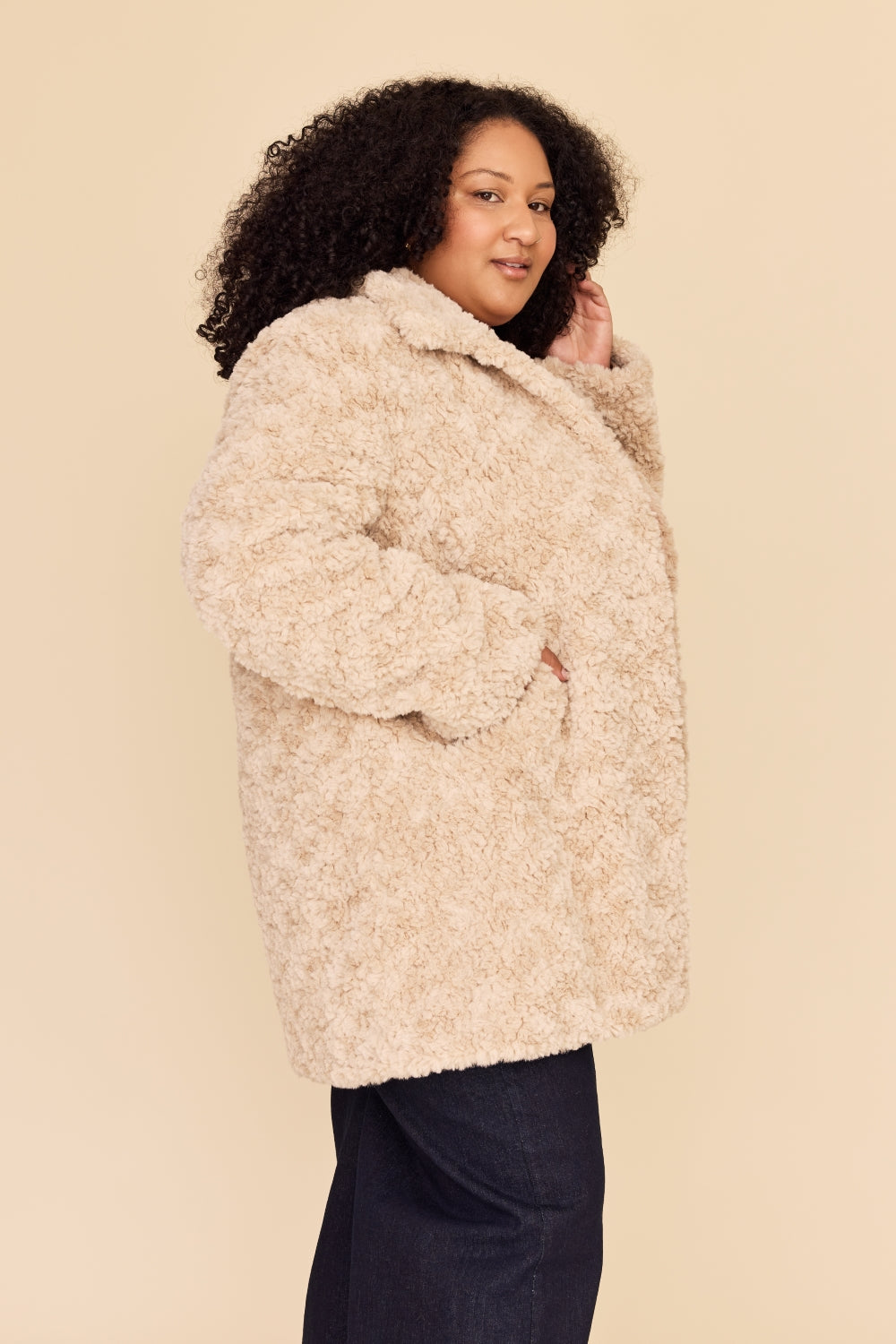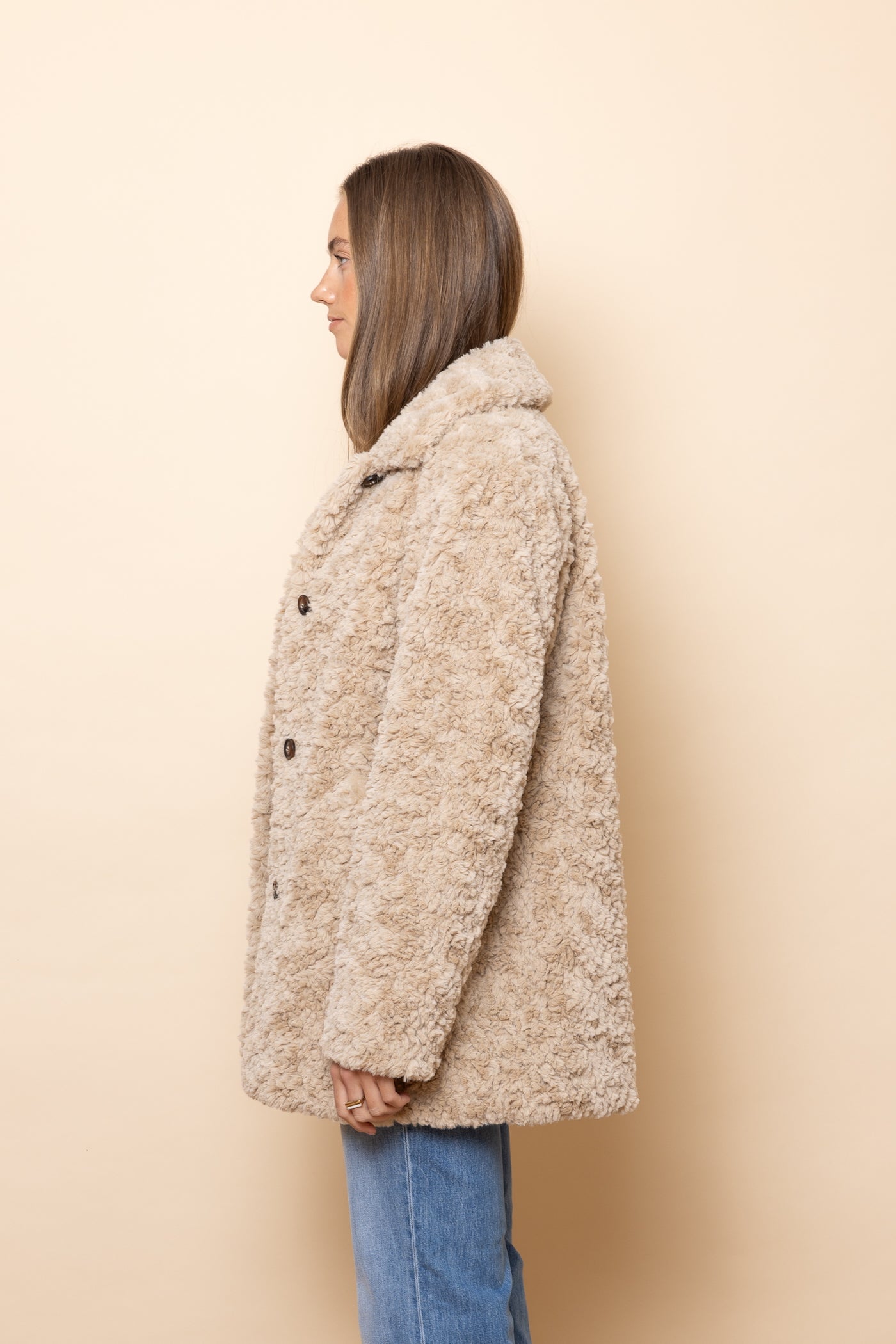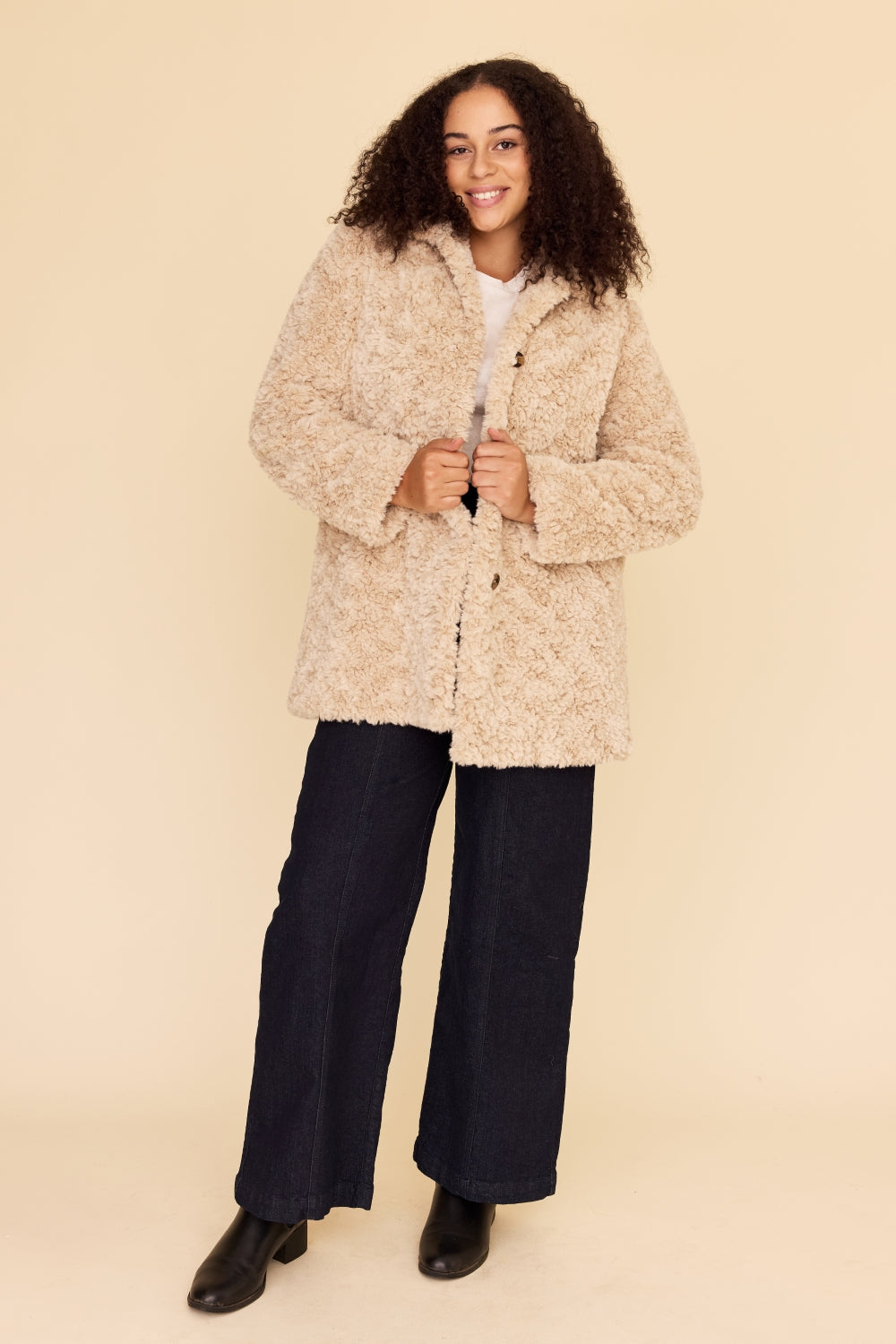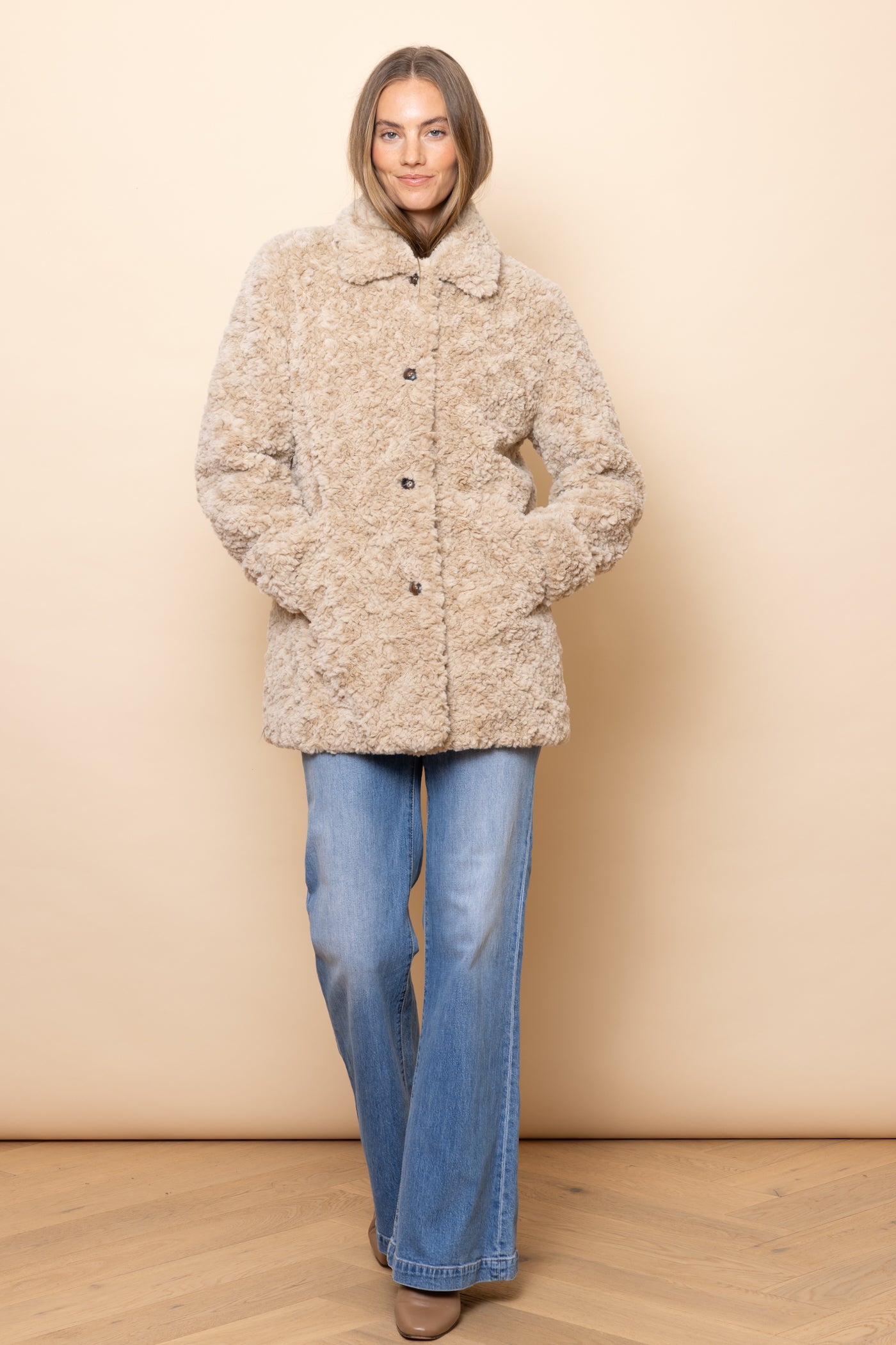 Made from a super soft textured faux fur in a perfectly neutral shade of creamy beige, it looks fabulous and goes with EVERYTHING in your wardrobe.