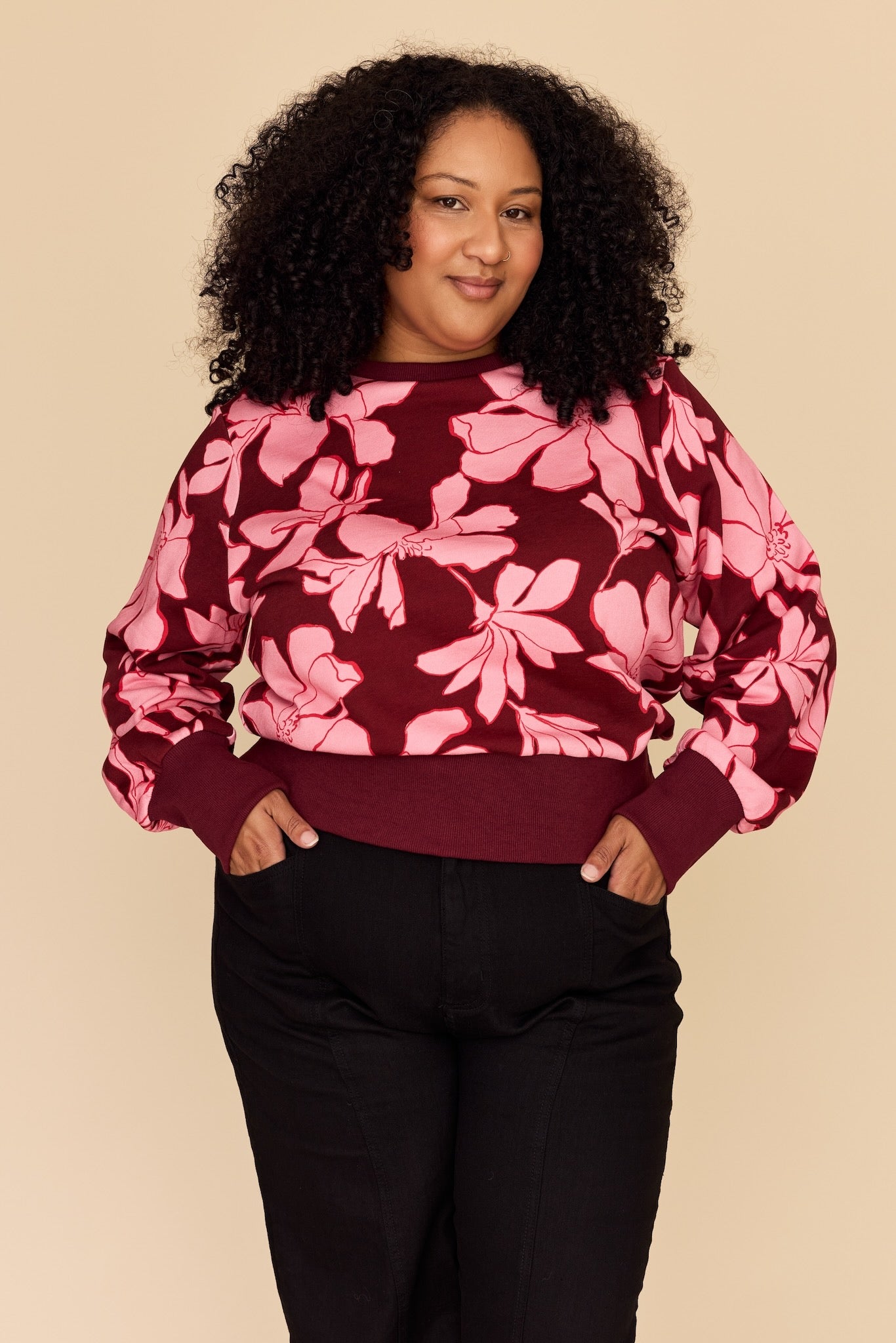 Janette wears size 3XL in our tops and dresses and a size 22 in our Freestyler Jumpsuit. She is 165cm (bust 129.5cm, waist 119cm, hip 140cm).
