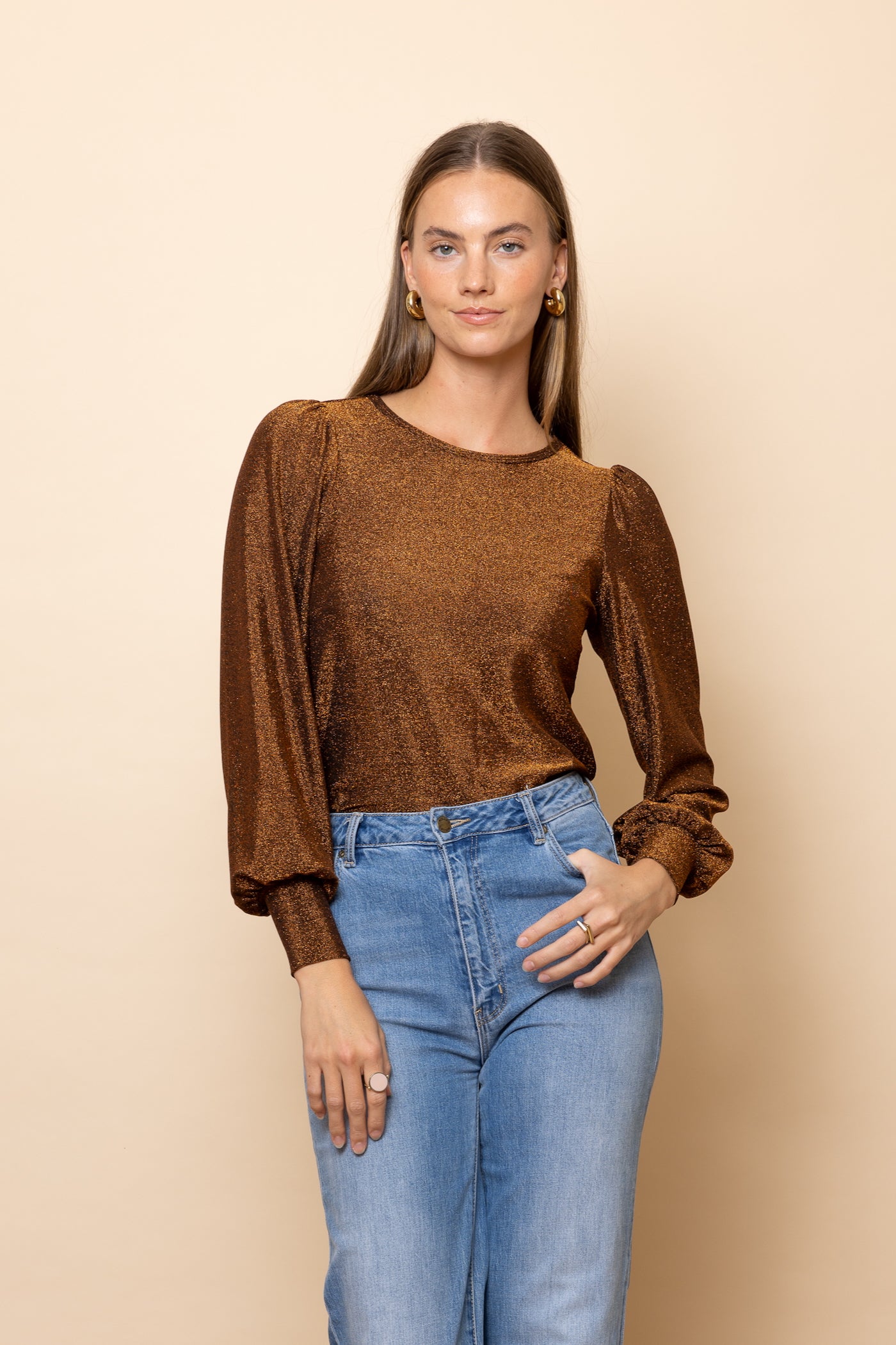 Nothing says instant glam like warm rusty bronze sparkles! This top is our spunky wear-anywhere option for catch ups, date nights, festivals - and work (why not??).