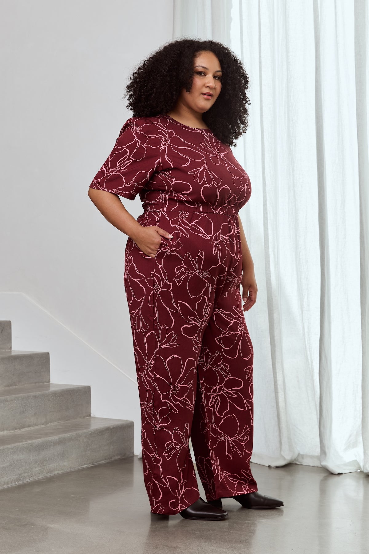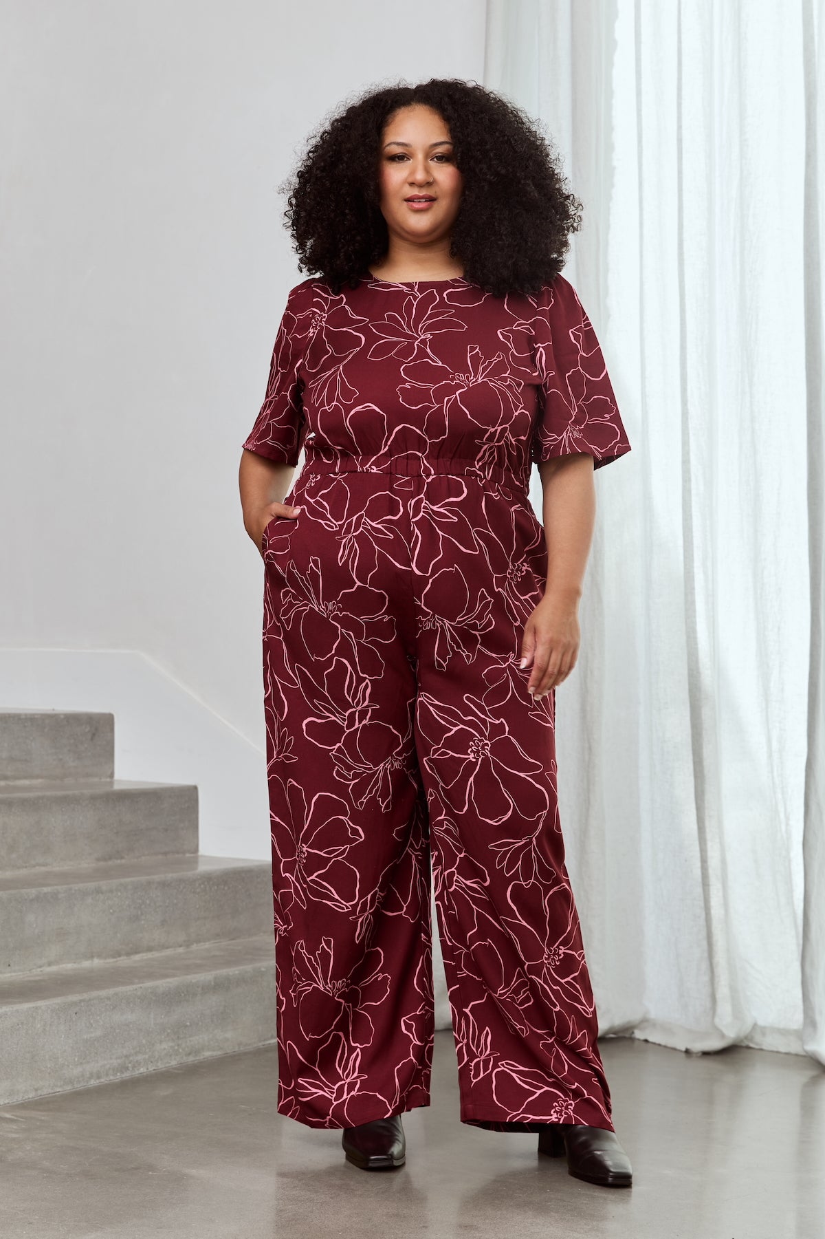 Janette wears size 3XL in our tops and dresses and a size 22 in our Freestyler Jumpsuit. She is 165cm (bust 129.5cm, waist 119cm, hip 140cm).