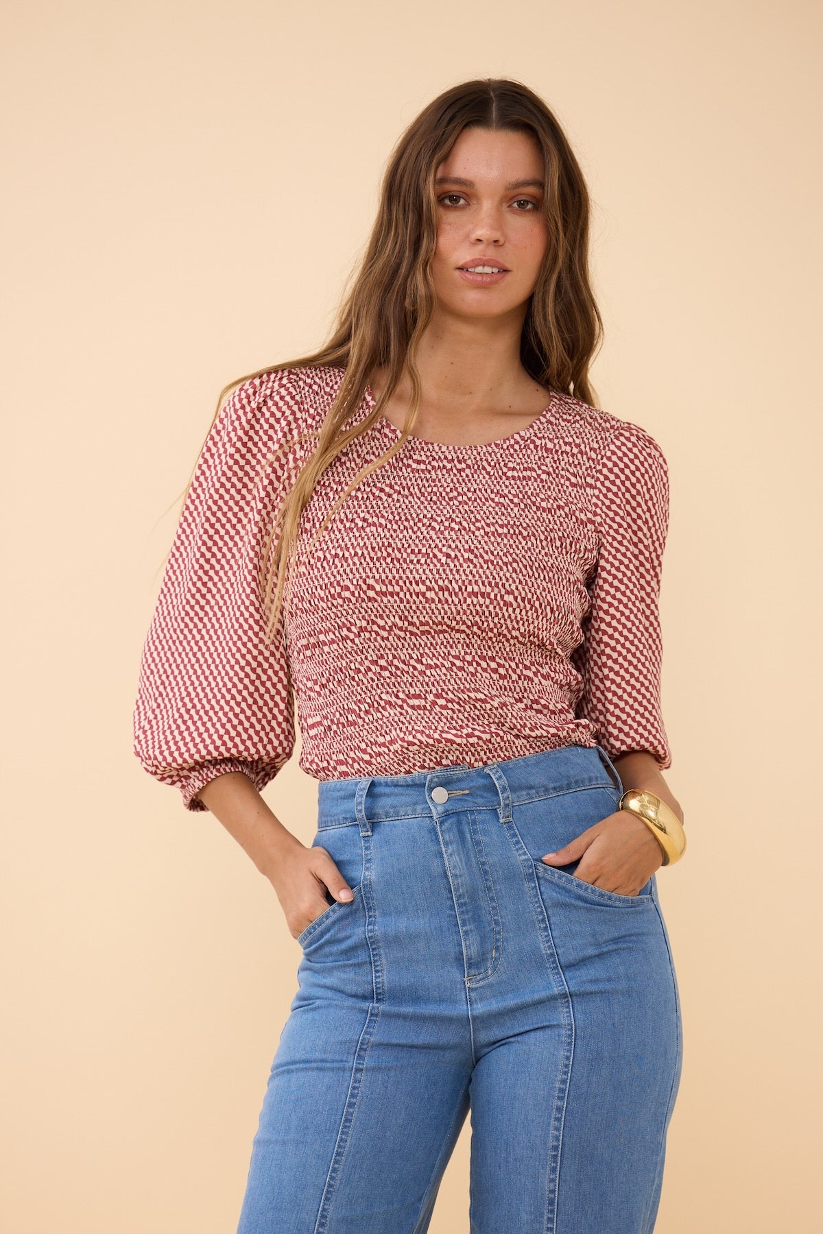 Regular price $127.20Textured shirred bodice for comfort and perfect fit with contrasting gorgeous breezy bell sleeves - yes please!! Paired with the mediterranean vibes of our Tessellated print this perfect top brings equal parts vintage summer holiday and modern cool.